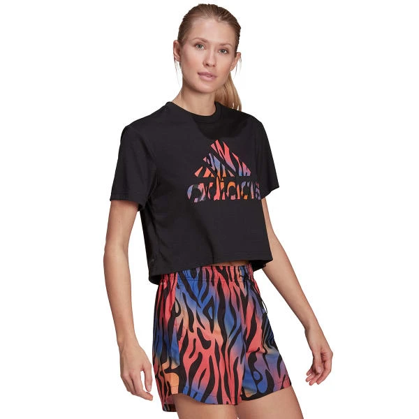 Show off your fearless side at the gym and beyond in this crop tee. Moisture-wicking AEROREADY gives you comfort and confidence whether you’re trying out a different class or meeting up with some new friends. A tiger-print adidas Badge of Sport on the chest reminds you that you have all the strength you need, but sometimes you just have to dig deep to find it. Made with a series of recycled materials and at least 60% recycled content, this product represents just one of our solutions to help end plastic waste.