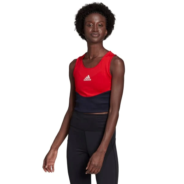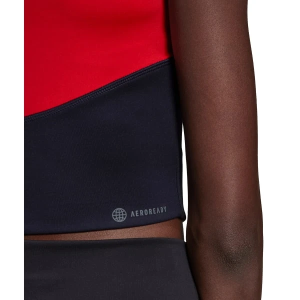 Pick up the pace in your side-to-sides. Lean lower on your skater jumps. Do it all with no fear in this adidas training crop top. The tight fit holds you in, and AEROREADY keeps you dry as you start to sweat. The colorful design and 3-Stripes style stand out when you meet up with your besties later. Made with a series of recycled materials, and at least 60% recycled content, this product represents just one of our solutions to help end plastic waste.