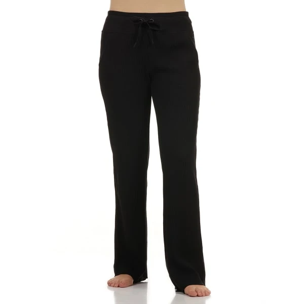 The Women’s Wide Leg Pants are made of a knit cotton and polyester blend, with a Calvin Klein logo and a drawstring waist.