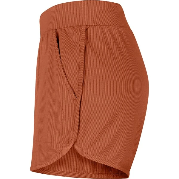 The Nike Women’s Yoga Ribbed Shorts combine sweat-wicking technology with soft ribbed fabric that feels loose and flowy. Dri-FIT technology moves sweat from your skin to help you stay dry and comfortable. Soft ribbed fabric is textured and has a little bit of stretch to keep you flowing. Curved hems have slits on the sides to let you bend and stretch comfortably.