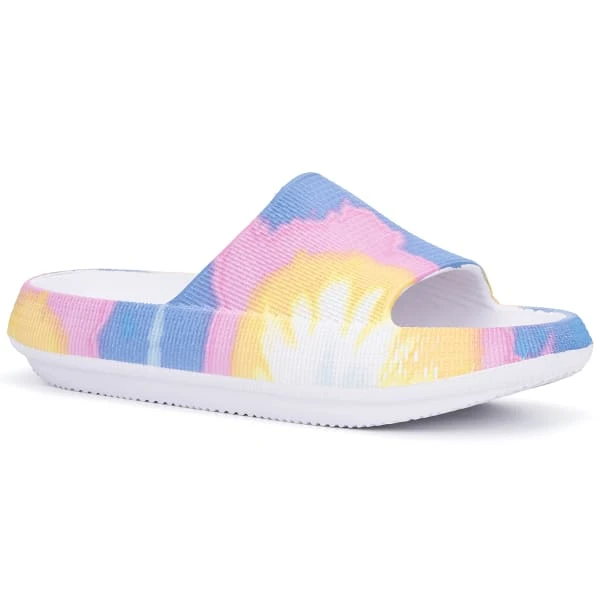 These Olivia Miller Slides feature a bright and colorful tye dye pattern in a slip on style.