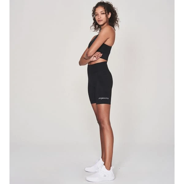 Update your activewear with our Ana Pocket Biker Short, a great alternative to sports leggings! Designed in a mid-thigh length and high-waisted shape, to help contour the body, moving with you through those tough workouts. Feel stronger and confident, with breathable weightless fabric technology keeping you fresh always! The hip pockets are placed on each side making sure training essentials are safe and nearby. We’ve added the YogaWorks branding on the front and side of the shorts for a premium feel.